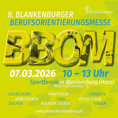 Am Samstag, dem 7. März 2026, findet im Sportforum Blankenburg (Regensteinsweg 12) die achte Auflage der Blankenburger Berufsorientierungsmesse (BBOM) statt. Von 10 bis 13 Uhr öffnet die Messe ihre Türen für Schülerinnen und Schüler, Eltern und Lehrkräfte, die sich über Ausbildungsmöglichkeiten, duale Studiengänge und berufliche Perspektiven in der Region informieren möchten. Gleichzeitig bietet sie Unternehmen eine Plattform, um mit potenziellen Nachwuchskräften in direkten Austausch zu treten.
