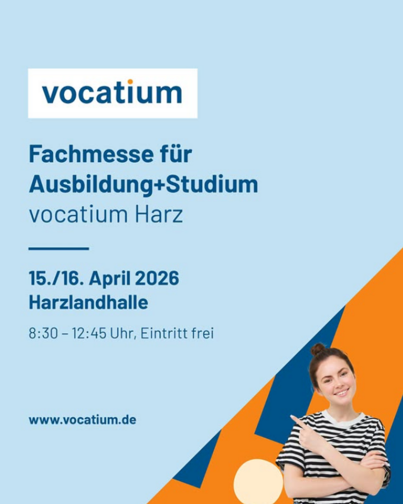 Hallo liebe Schülerinnen und Schüler im Harz. Die vocatium – Fachmesse für Ausbildung+Studium öffnet ihre Türen für dich und deine berufliche Zukunft.